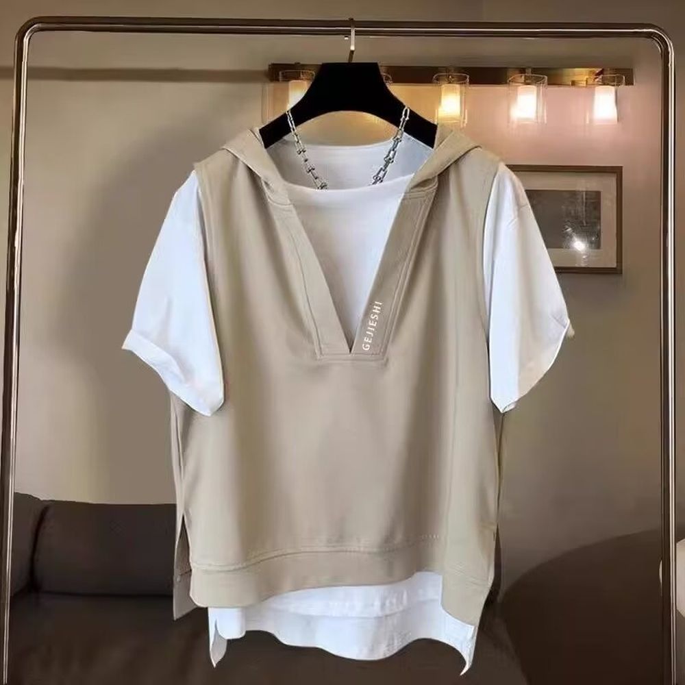 Extra Large Embroidered Hooded Short-Sleeved T-Shirt For Men