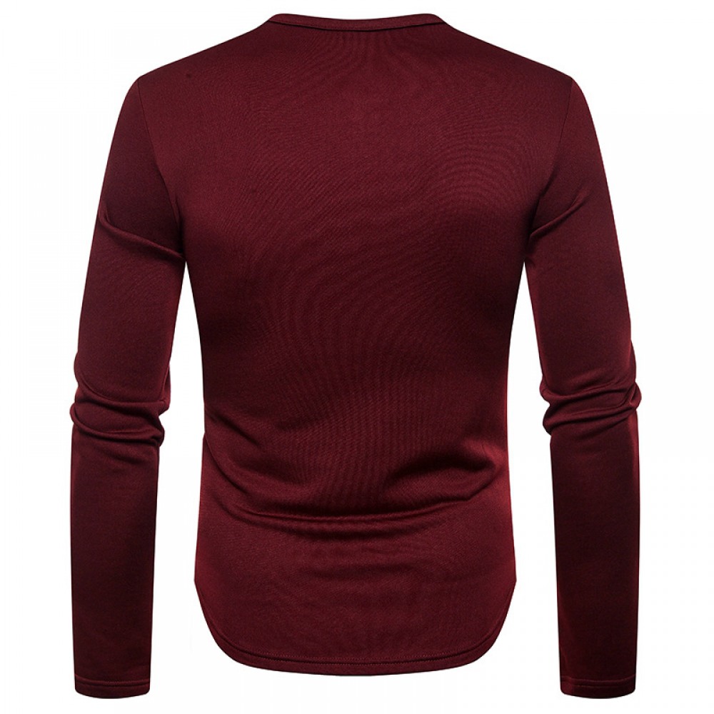 Men's Plus Size Plus Velvet Warm Henley Collar Long-Sleeved T-Shirt Bottoming Shirt