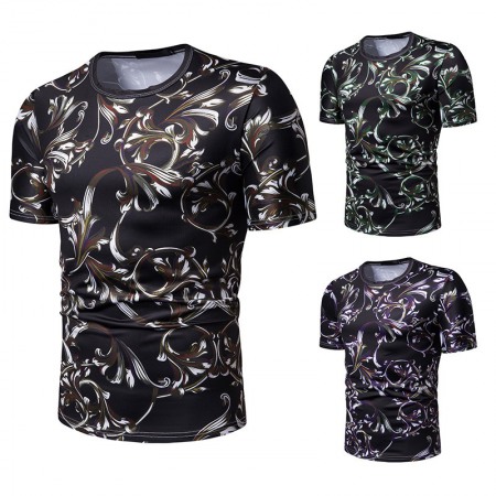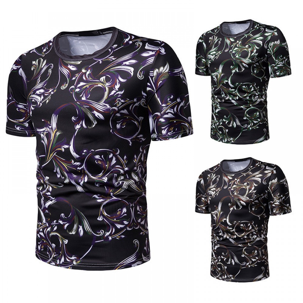 New Fashion Men's European Floral Print Short-Sleeved T-Shirt