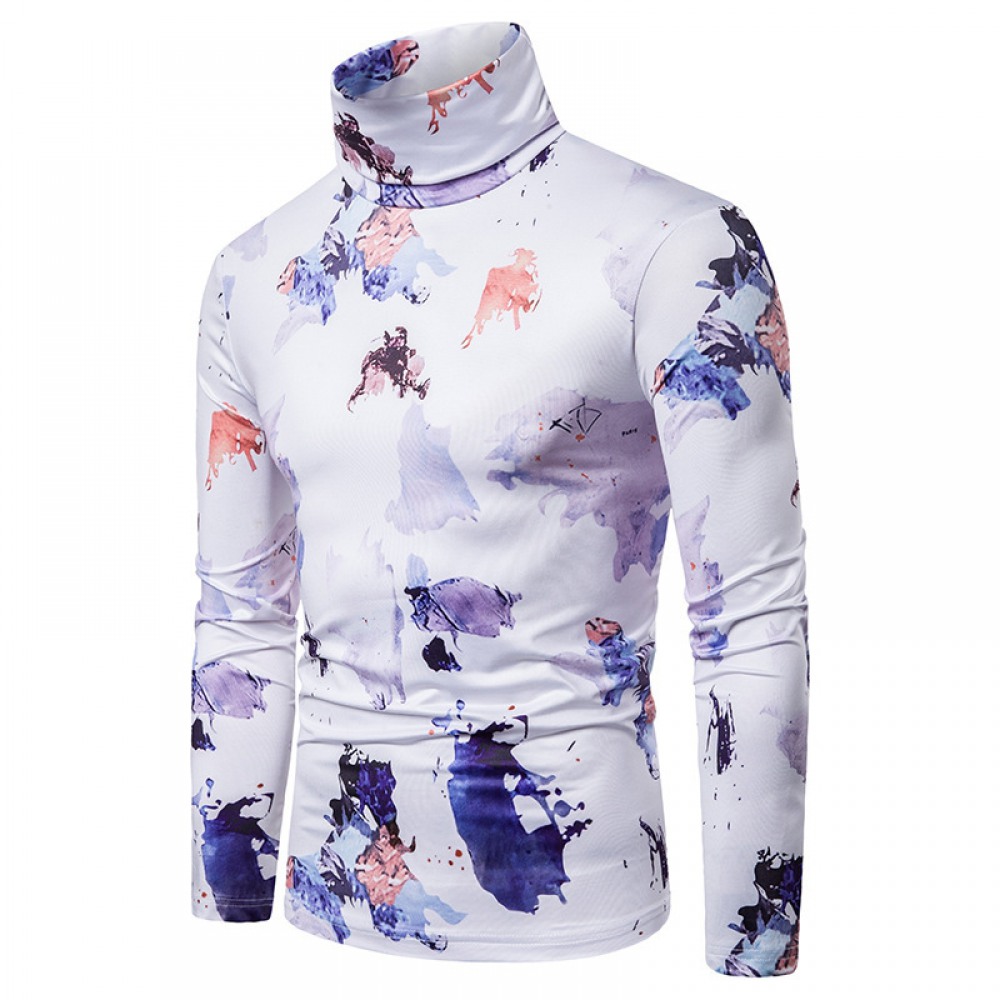 New Men's Large Size 3D Ink Printing High Neck Long Sleeve T-Shirt Bottoming Shirt