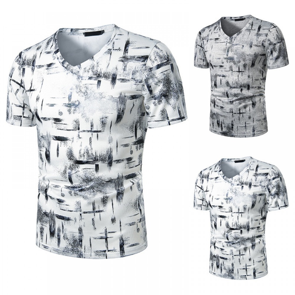 Summer Men's Fashion Casual Gradient Short-Sleeved V-Neck Short-Sleeved T-Shirt